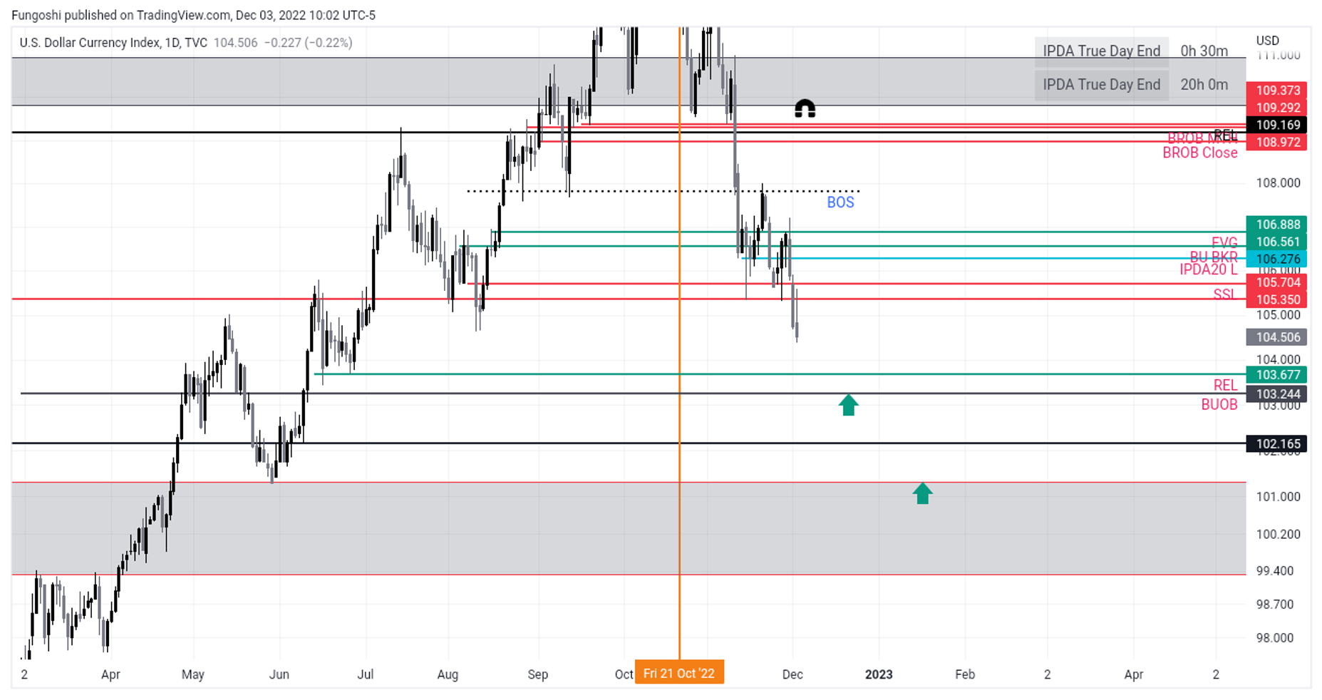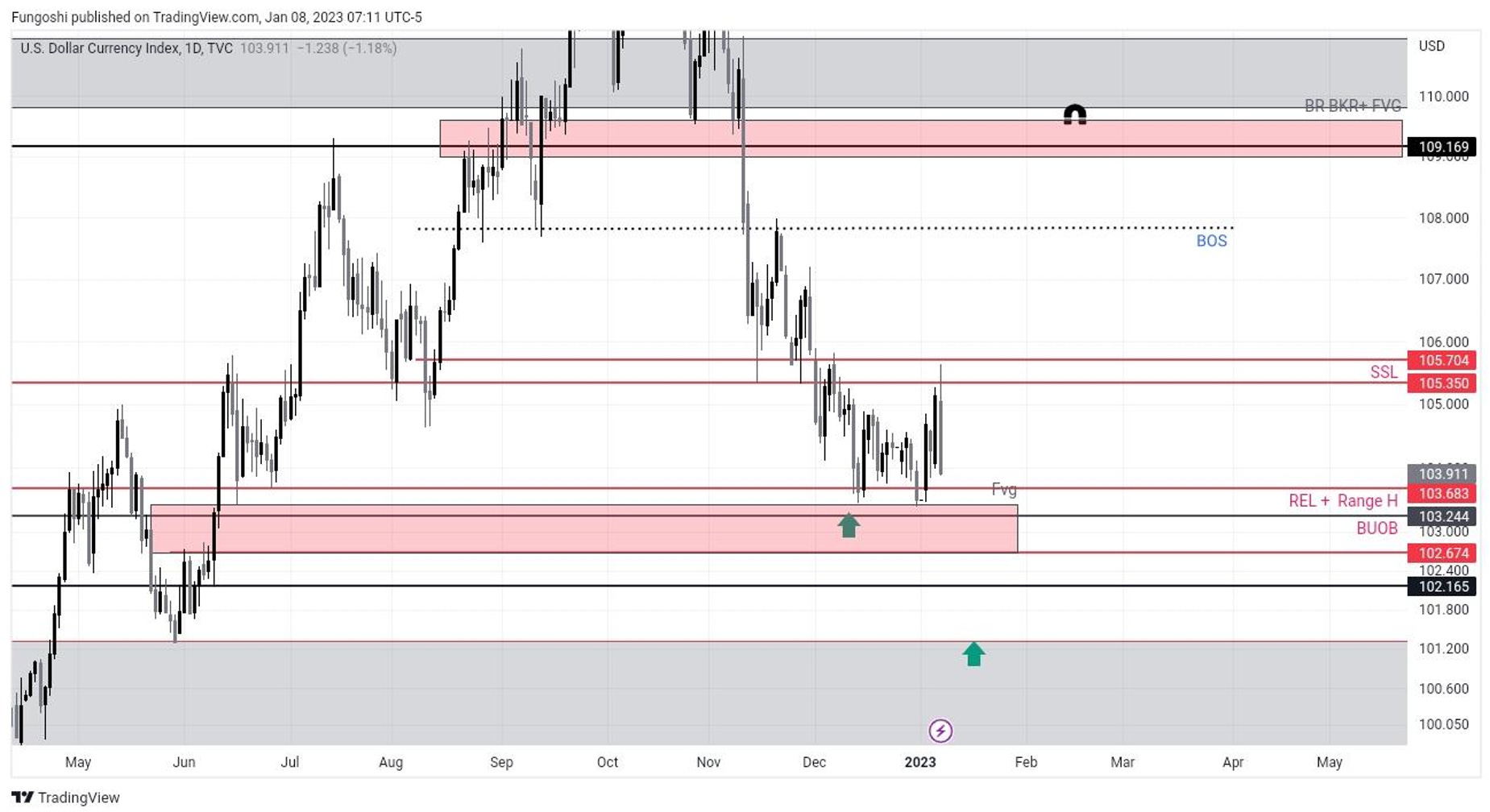 Gm gm #FungiFam. Happy new year and happy to be back doing Sundai Fungi. Since our last analysis, we have moved closer to our expected target of 103.244 for the dollar. We seem to be reversing from where we are at right now, but with very high conviction I can say that we might make a quick wick to our target and maybe down to 102.647 as well. Then we have a high probability to reverse and go for 109.167. Seasonality is important in Q1 and seems like a highly likely scenario because DXY has a bullish seasonal tendency up until March and the beginning of April.